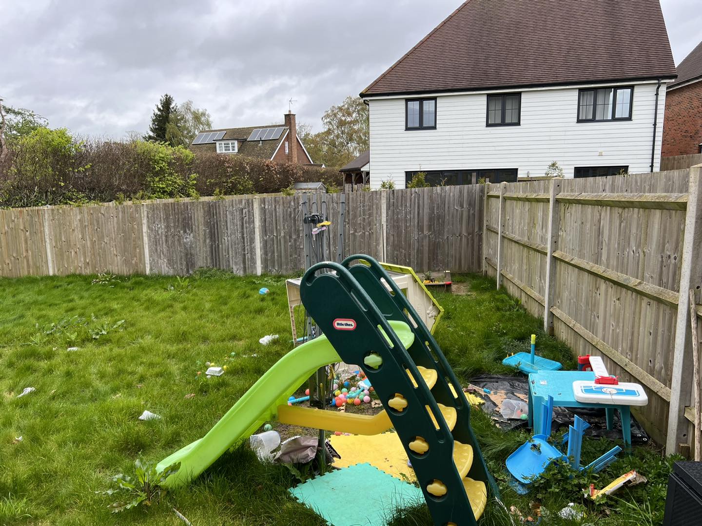 Last week, our team completed another amazing garden transformation. We revisited the site today to use an electric power brush on the artificial grass, ensuring it looks its best. The customer wanted a safe, single-level garden for their children, so we kept the design on the existing slope. We started by excavating the area and laying down 22 tons of MOT Type 1 for a solid foundation. Next, we installed 37m² of beautiful Kandla grey Indian sandstone. To add a finishing touch, we included stepping stones with decorative stones, creating a visually stunning and functional garden space.